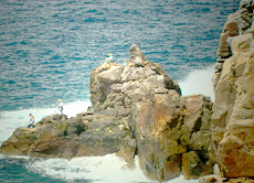 打ち寄せる荒波に浸食された岩盤異様だが、美しい・・・