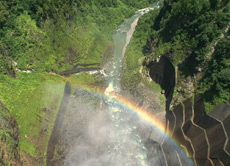巨大なダムからはきだされる放水量の多さ、その勢いに圧倒される。