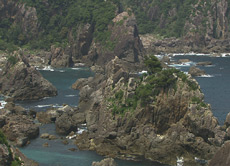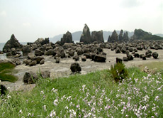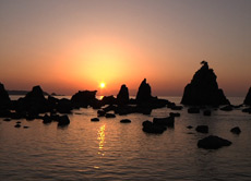 弘法大師の伝説が残る橋杭岩(はしくいいわ)だ。