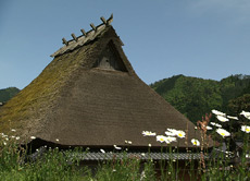 縄文時代、すでに竪穴式住居の屋根として使われていたというかやぶき。