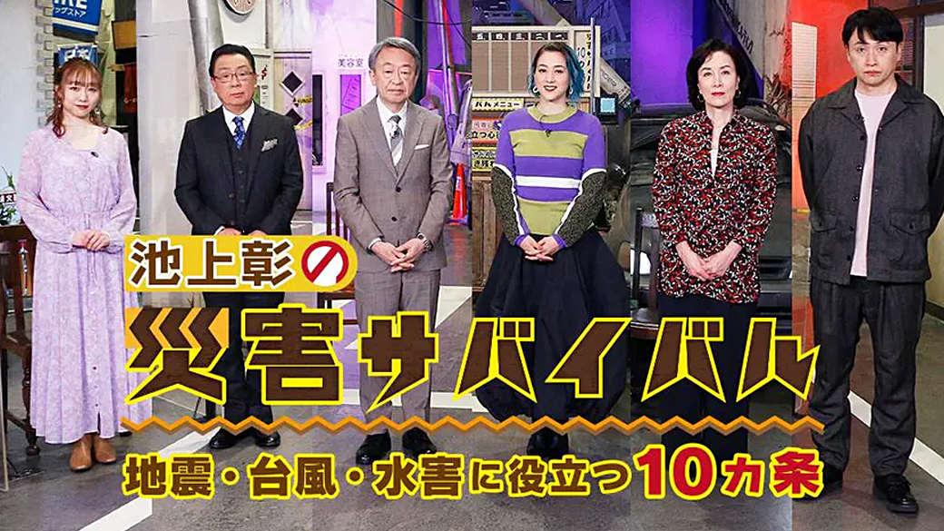 昔の常識は今の非常識!?池上彰が最新の防災知識を伝授します!「命を守るサバイバルテスト」「1万円で家族4人3日過ごす防災袋」「自衛隊に学ぶ簡単サバイバル術」等。