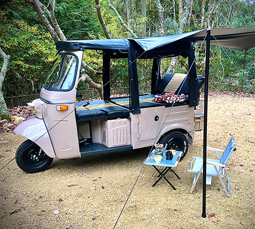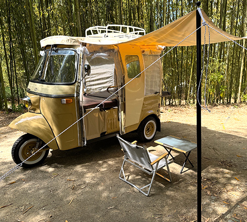 古き良き時代のデザインで作られた三輪車を、キャンピングカースタイルにアレンジしてリリースしています。EVでの製作も可能です。