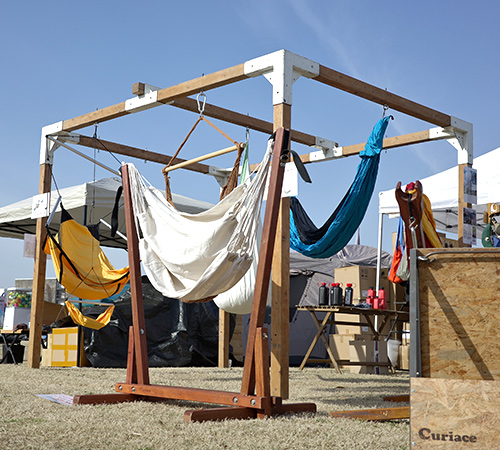 日本規格のハンモックブランド Curiace キュリアスハンモック。キュリアスハンモックは日本人の体格や住宅事情、キャンプ場のサイズを徹底的に考慮し4畳半(250cm)程度のスペースでも一晩寝ていただける快適性を実現した日本規格のハンモックです。そのためお部屋のスペースを埋めてしまうことなく子供部屋や寝室、リビングの一角にあるタタミスペースなど様々な場所でお楽しみいただけます。