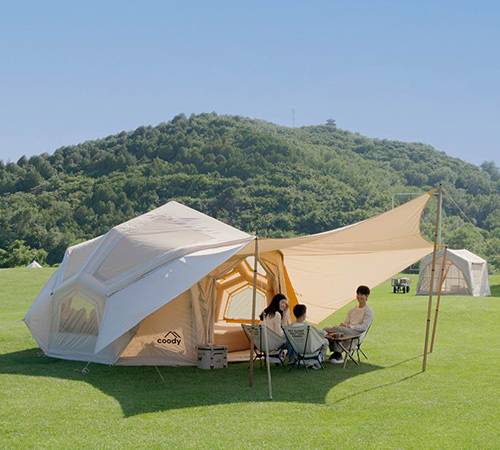 キャンプが特別になる魔法—— coodyのエアテントはポンプで空気を入れるだけの簡単設営。初心者や女性でも安心して使用できます。広々とした空間で、家族や友人とゆったり過ごせるだけでなく、設営や撤収の手間を減らし大切な人との時間を存分に楽しめます。耐風・防水性に優れた高品質な素材を使用しており、天候に左右されずに快適なキャンプを実現。気軽に上質なグランピングを体験し、特別な思い出を作ることができます。
