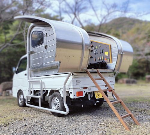 ALLアルミボディの軽トラック積載式キャンピングキャビン「CARRYCABIN」を出展します。斬新なデザインに加え、従来の積載型キャビンの課題だった荷台への積み込み、積み降ろしが簡単にできることが大きな特徴です。キャビンの中はカスタマイズ可能な自由空間。趣味の部屋ごとフィールドに移動できる「CARRYCABIN」の魅力を、ぜひその目でお確かめください。