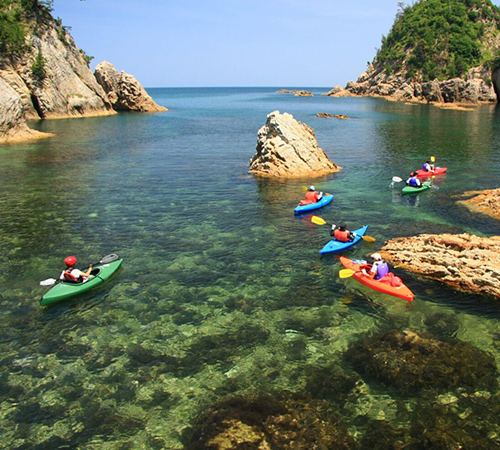 京都府京丹後市、兵庫県豊岡市・香美町・新温泉町、鳥取県岩美町・鳥取市の6市町からなる日本海沿岸地域は、地形・地質の希少性が評価され、ユネスコ世界ジオパークに認定されています。奇岩の絶景や地形を活かしたキャンプ、カヤック、SUP、トレイル、サイクリング、スキーなどのアクティビティ、松葉ガニや但馬牛などのグルメ、温泉も楽しめ、見る・食べる・学ぶ魅力が詰まったエリアです。