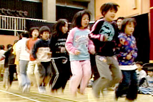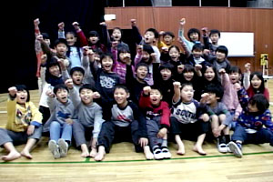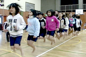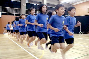 楽しいことが大好き!!いつでも教室はワイワイガヤガヤ。お笑いネタも飛び出します。でも調子にのりすぎて雷が落ちることも…このにぎやかさをパワーに変えて大縄とびに挑みます。 |