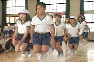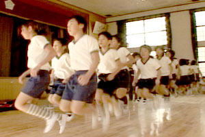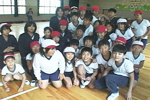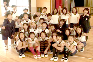 元気で明るく負けず嫌いのチームである。 キャプテンを中心に気持ちを一つにして自分達で練習時間やとぶ位置などを決めて取り組めた。 回し手の息が合って、とぶ人や数える人たちみんな自分の役わりをはたしている。疲れていても,自分は最後まで頑張るという気持ちをもってとんでいる。応えんする人たちは大きな声を出して励ましている。 |