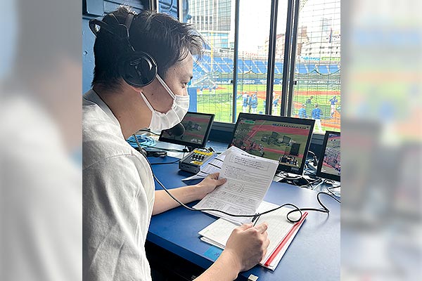 スポーツニュース制作、スポーツ中継、スポーツバラエティの番組制作を主に行っています。ニュースはテレビ東京系列で放送している「スポーツ リアライブ~SPORTS Real&Live~」内にある阪神やオリックスの試合のハイライト、夏の時期は高校野球などのパートをテレビ大阪で担っています。中継に関しては主に阪神戦を年6~7回ほど生放送。また、毎週月曜放送のオリックスファンに向けたミニ番組を作っています。単発でアスリートを追い、ドキュメンタリーを制作することもあります。