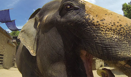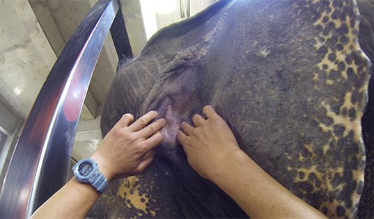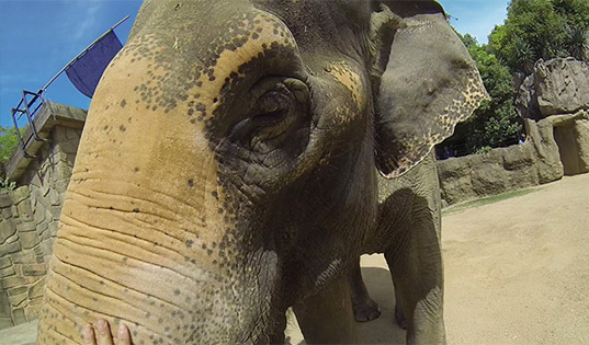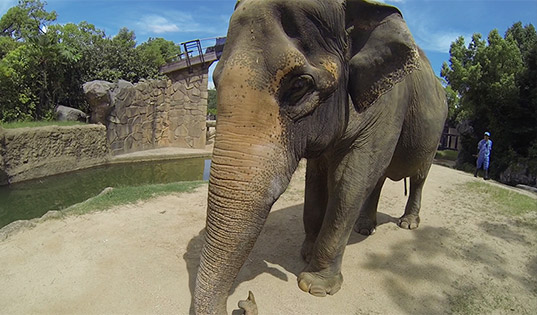 国内のゾウで2番目に高齢のアジアゾウで、人間でいうと80歳くらいといわれる。目先から鼻先までの白い部分が多いのが特徴。