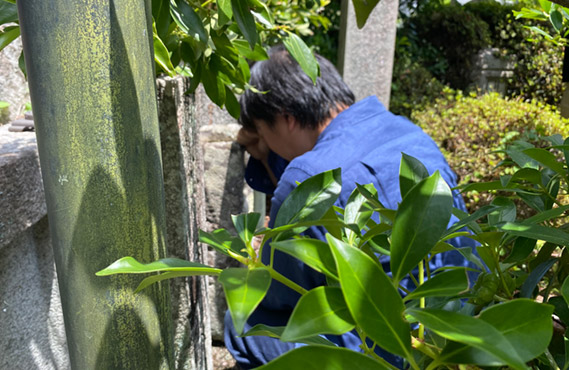 墓マイラー、カジポンさんの独特のお参り方法。墓に直接触れ、偉人に感謝を伝えるソウルトーク。「海外ではめちゃくちゃ不審者扱いされるんですよ〜」というカジポンさん。カタコト英語で理由を伝えると理解してくるそうですが、結婚して子供が生まれてからは怪しまれないように「家族同伴」で行くそうです。