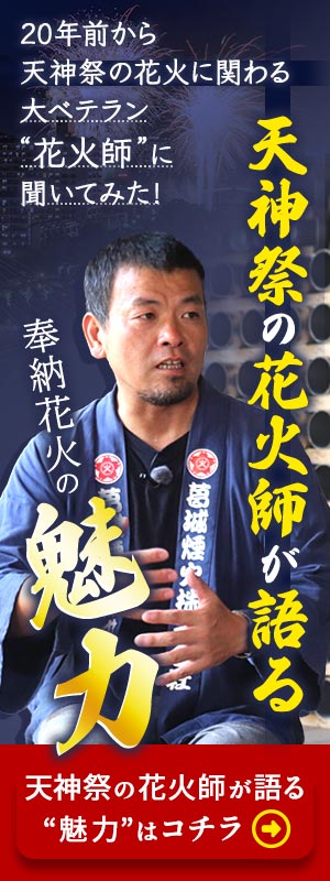 上原美穂(テレビ大阪アナウンサー)が、天神祭のクライマックスである奉納花火の打ち上げを担当する花火師さんにインタビュー。花火師ならではの奉納花火の見どころ、他の花火大会との違いとは?!