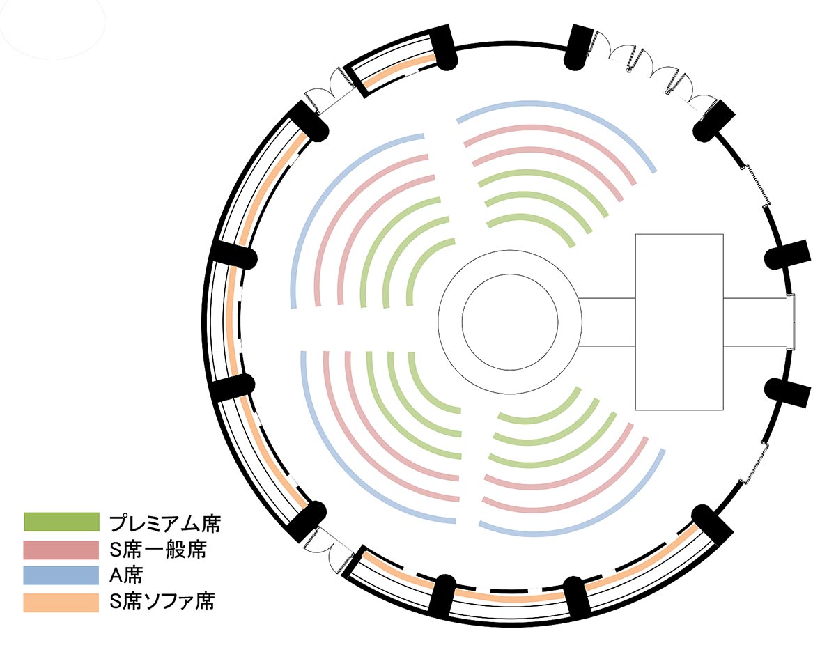 ステージの見切れが発生するお席や、スピーカーやカメラなど機材に近いお席となります。