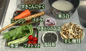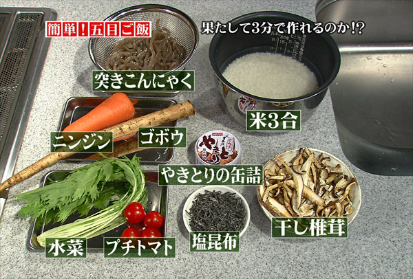 五目ご飯はダシを取ったり、鶏肉・ニンジン・ゴボウ・こんにゃく・椎茸などの下処理をしたりと、意外に時間がかかります。