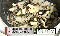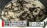 ダシの代わりに刻んだ塩昆布を入れます。