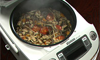 干し椎茸手で潰しながらジャーに入れます。潰しながら入れることで戻さなくても旨味を十分に出してくれます。