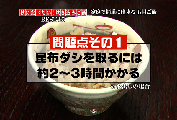 - 昆布ダシを取るには約2〜3時間かかる