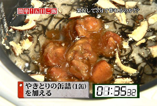 鶏肉の代わりにやきとりの缶詰をタレごとジャーに入れます。鶏肉の下準備を大幅に短縮することが出来ます。