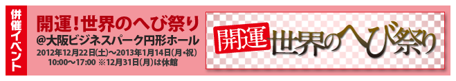 「新春わくわく子供ランド」2013年1月4日(金)〜1月6日(日)10:00〜17:00。会場はツイン21アトリウム。入場料は無料です(※各種アトラクションへの参加は有料)。子供に人気の“ふわふわ”や“アニマルバッテリーカー”“エアーバッティング”等の遊具がツイン21アトリウムに登場。初日(4日)は獅子舞の演技も行われます(11:00〜/14:00〜)。